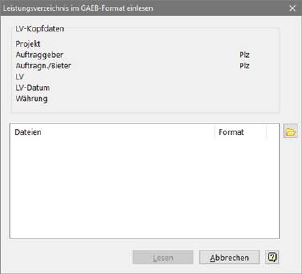 Einlesemaske für GAEB84-Dateien