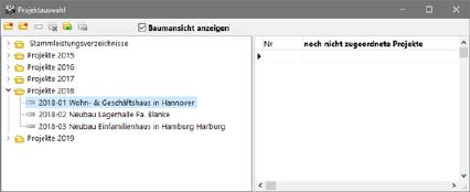 Projektverwaltung mit Auswahlliste als Baumansicht