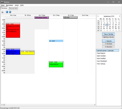 Die Terminverwaltung unterstützt Sie wie die Adress- und Dokumentenverwaltung bei der Organisation des Büroalltags. Termine werden grafisch oder alternativ in einer Tabellenansicht dargestellt und lassen sich ähnlich den Dokumenten Adressen und Projekten zuordnen.