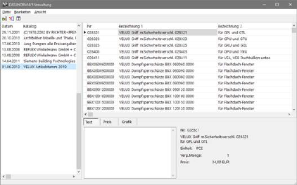 Die Artikel werden in Katalogen verwaltet. Pro Katalog lassen sich bis zu 1 Million Artikel darstellen, die Anzahl der Kataloge ist beliebig. Für jeden Hersteller wird ein eigener Katalog eingerichtet. In älteren ASBwin - Versionen wurden die Artikel in speziell angelegte Projekte eingelesen, was die Speicherkapazität deutlich einschränkte. Jetzt werden DATANORM - Artikel unabhängig von Projekten verwaltet.