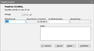 Bieterprüfung mit Gesamtpreiserfassung für z. B. Fehlerprotokoll