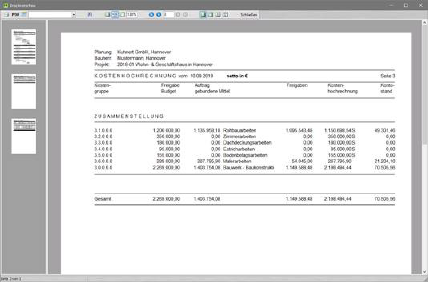 Listenvorschau: Kostenhochrechnung