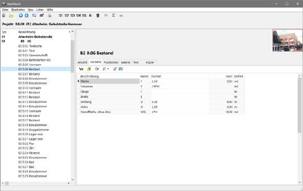 Nachdem alle Räume erfasst sind, tragen Sie die Raummaße ein. Hierzu legen Sie Variablen an, die für alle Räume gelten und mit Formeln zur automatischen Berechnung hinterlegt werden können.