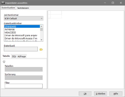 Neben diversen Fremdformaten können Sie Adressen auch aus Textdateien einlesen, wenn diese mit bestimmten Trennzeichen für Datensätze und Felder versehen sind. Eine genaue Beschreibung der Vorgehensweise entnehmen Sie bitte der Onlinehilfe (Schalter Hilfe) zu dem jeweiligen Fenster.