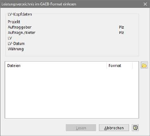 Einlesemaske für GAEB84-Dateien