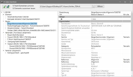 Nach dem Auswählen der IFC Datei werden Ihnen die enthaltenen Details angezeigt.