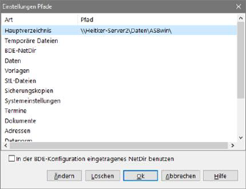 Die Änderung der Pfade ist nur nötig, wenn die Datenbank auf einem Server installiert ist, die Anwendungsdateien aber lokal installiert werden, um z. B. den Programmstart zu beschleunigen oder den Netzverkehr zu verringern. Wird das Programm von einem Server aufgerufen sollten die Einträge leer sein.