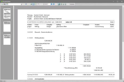 Listenvorschau: Kostenhochrechnung