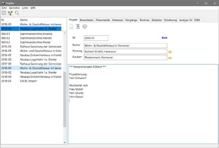 Bei der Tabellenansicht der Projekte gibt es eine weitere Möglichkeit, aktuelle Projekte schnell wiederzufinden, bietet die Version ASBwin 12 mit der Funktion Projekt in Schnellauswahlliste übernehmen, die Sie in der Schalterleiste auf dem Projektregister finden (weißer Pfeil auf grünem Kreis). Stellen Sie den Mauszeiger auf das gewünschte Projekt in der linken Auswahlliste und betätigen Sie dann den Schalter. Das Projekt wird jetzt nach oben verschoben und wird dort auch in allen Suchfunktionen der anderen Module von ASBwin angezeigt.