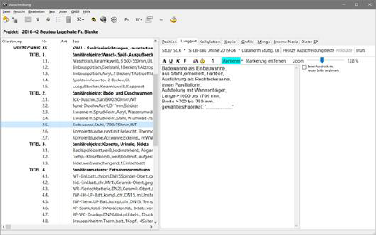 In diesem Register wird ebenfalls der Langtext angezeigt. Im Gegensatz zum ersten Register Position stehen hier aber weitere Funktionen speziell für die Textbearbeitung zur Verfügung. Außerdem haben Sie hier mehr Platz für die Texterfassung zur Verfügung.