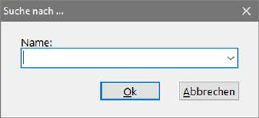 Eine sehr häufig verwendete Funktion ist die Namenssuche. Wählen Sie hierzu den Suchschalter aus der Schalterleiste, den entsprechenden Menübefehl Suche nach Namen im Menü Bearbeiten oder die Kurzwegtaste F3. Es erscheint ein kleines Suchfenster mit dem Eingabefeld am Bildschirm. Geben Sie den vollständigen Namen oder die ersten Buchstaben des gesuchten Namens ein und bestätigen Sie Ihre Eingabe mit Return. ASBwin sucht nach dem ersten Datensatz, der dieser Zeichenkette entspricht. Falls der Name nicht gefunden wird, steht der Auswahlzeiger auf einer Adresse, welche der Gesuchten ähnelt.